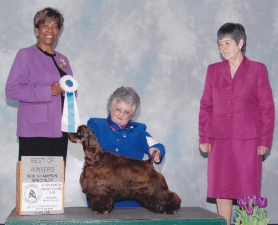 Silverhall Supernatural Ch. Silverhall Salutation x Ch. Silverhall Superlative WB, BOS to BV and then onto BOS to BOB from the 6-9 class under judge Jamie Hubbard at the Conneticut Westchester Cocker Spaniel Club March 2012. |