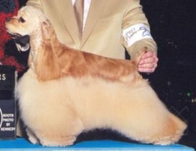 | Ch Silverhall Signature "Victoria" Ch. Lydgate Latin Lover X Silverhall Seventh Heaven Best in Sweepstakes and two Specialty majors then on to finish her Championship. Victoria is owned by Harland Atkinson and family. |