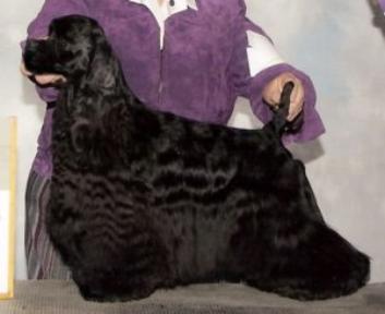 Ch. Silverhall On The Flipside "Raven" Ch. Overoak Rising Son X Junipers Judge Judy A blend of the best of pedigrees. Winning against the best. Co-owned with Pat Leamy, Flipside. |