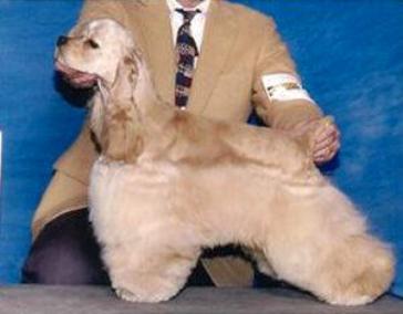 Ch. Buttonwoods British Sterling "Mick" Ch. Overoak Rising Son X Ch. Buttonwood England Rose Mick came from a litter of all champions, including an ASC Futurity winner. Already the sire of multiple Specialty winning champions from his first two litters. We hope he is going to follow in his family's footsteps. Bred by Cathy Carey, Buttonwood. |